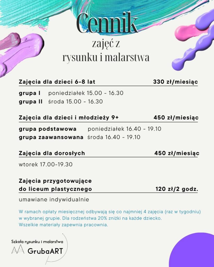 Szkoła rysunku i malarstwa GrubaART w Kiełpinie